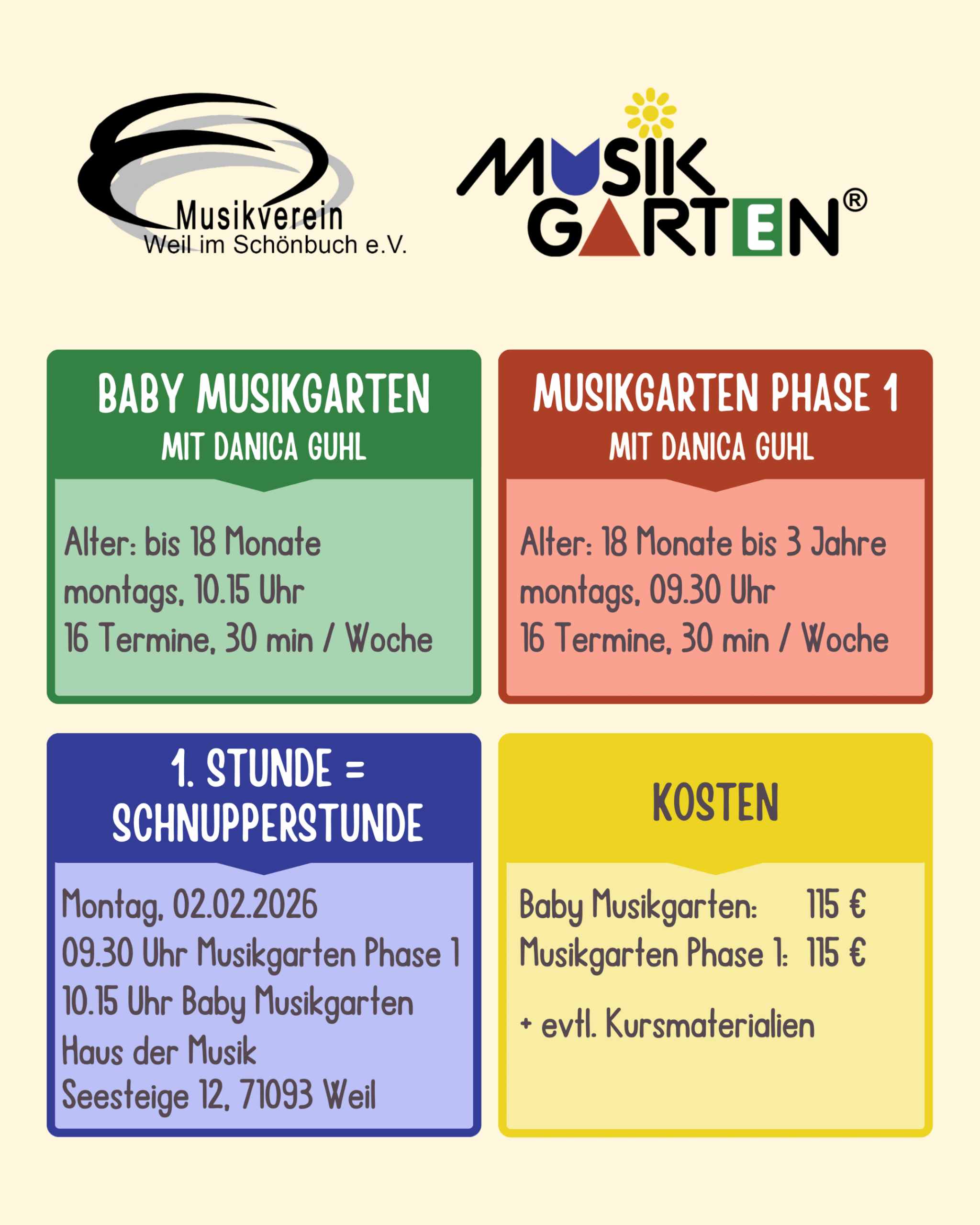 Neue Musikgartenkurse ab 02. Februar 2026
